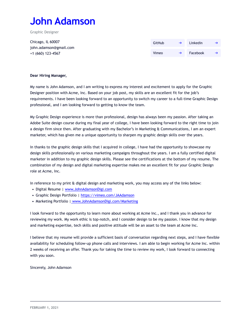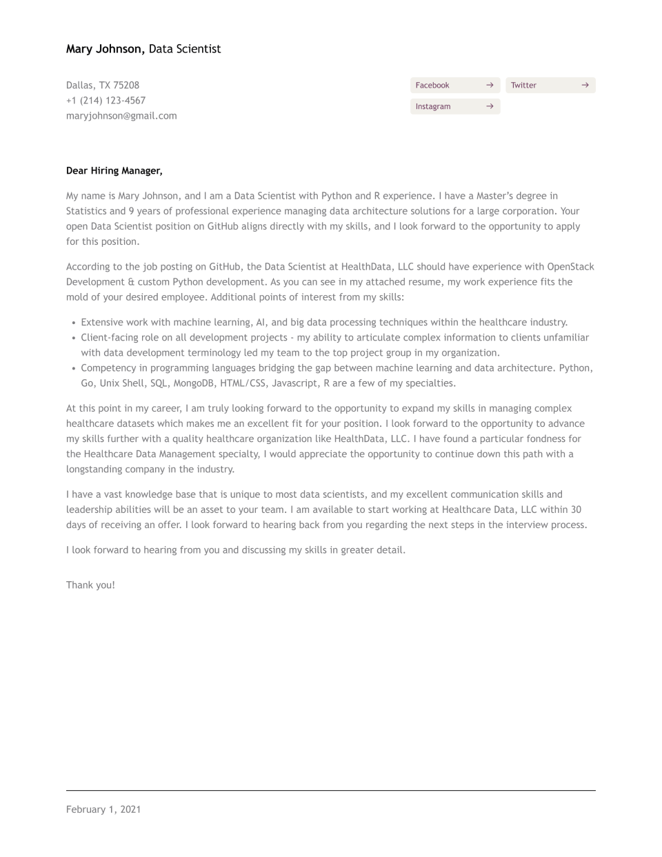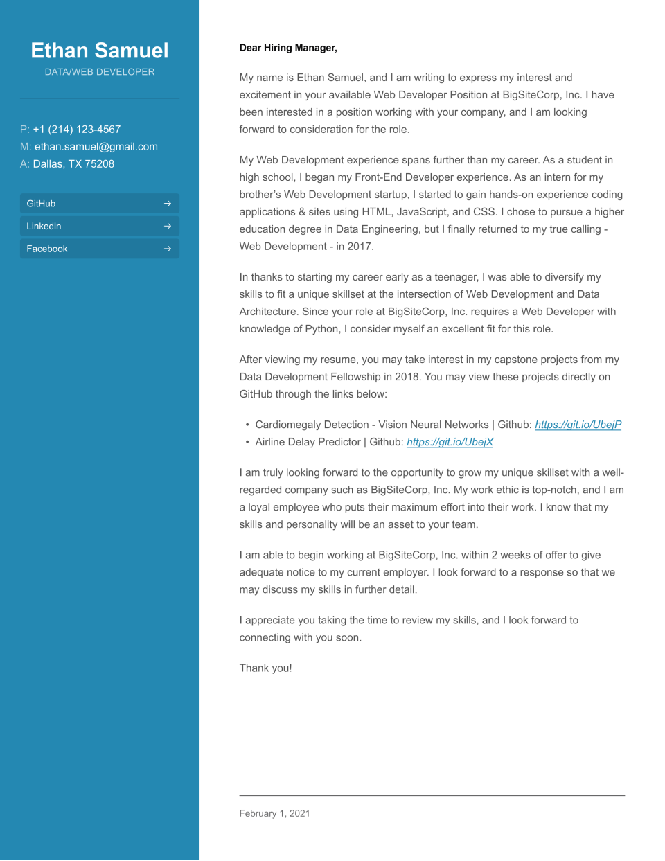 Besides being written by recruiting pros, the cover letter templates are available on our website for free. Instead of racking your brain over how to best introduce yourself, or making the mistake of not writing a cover letter at all, pick a free cover letter template that works for you and create your own letter in minutes. Upgrade to a Premium plan to download your cover letter onto your device and use it anywhere.